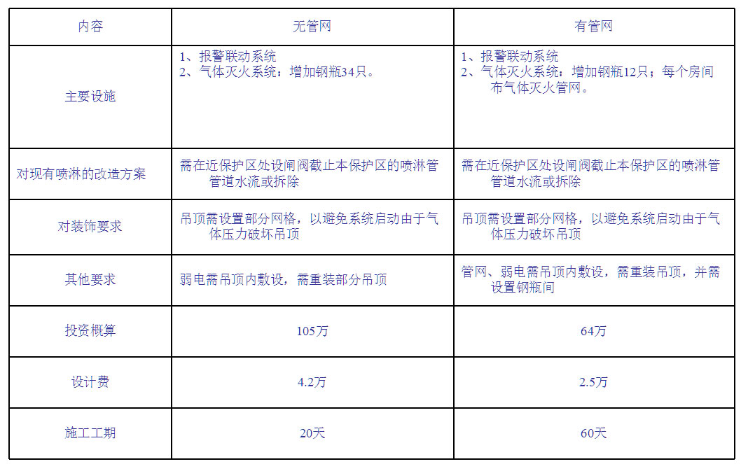 檔案室消防系統由水噴淋改為氣體滅火的方案