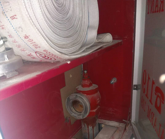 (3)模擬實際噴水試驗。接好水槍,做好準備工作,開始試驗,檢查水的壓力及查看是否有漏水情況。